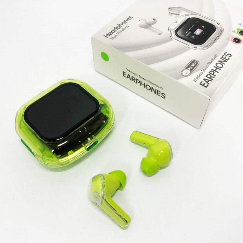 Бездротові вакуумні навушники TWS з дисплеєм LED, вологозахист IPx4 Bluetooth 5.4 з кейсом. Колір: зелений