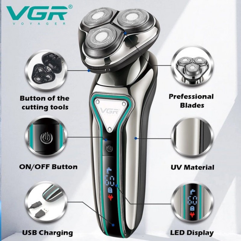 Електробритва VGR V-323 від USB – Використовувати бритву можна для вологого або сухого гоління, гоління з милом або кремом забезпечить кращі результати гоління. Три голячі головки автоматично адаптуються до контурів вашого обличчя, шиї та щелепи.