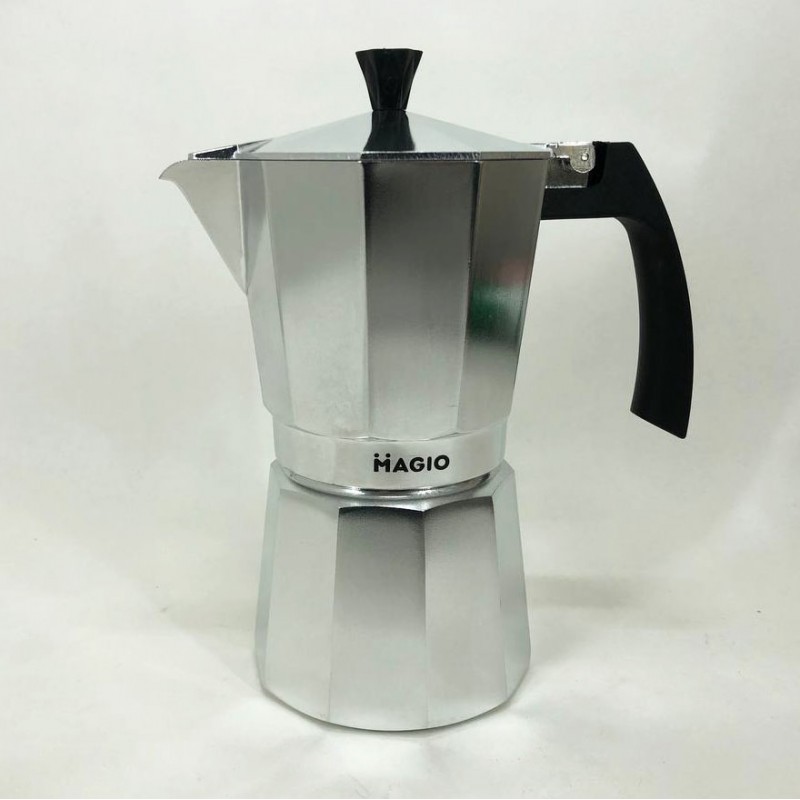 Класична гейзерна кавоварка MG-1001 прекрасно підходить для приготування традиційного еспресо. Виготовлений із безпечного алюмінію, який може вступати в контакт із харчовими продуктами, ручка із термостійкого пластику. Підходить для використання на газових, електричних плитах та багатті.