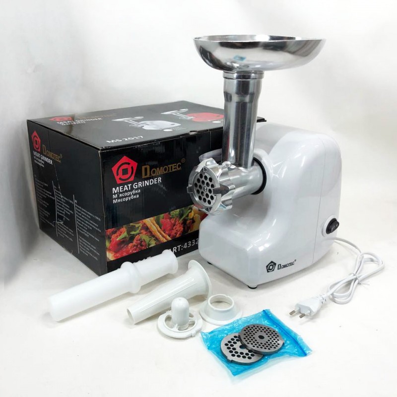 Потужна та продуктивна м’ясорубка MS-2017 швидко переробить будь-який тип м’яса на фарш для ароматних домашніх котлет або інших страв. Потужність пристрою 1500 Вт за хвилину його експлуатації ви зможете приготувати 1,3 кг фаршу. Додатково в комплекті поставляються три грати різного діаметру за допомогою яких ви зможете регулювати ступінь помелу м’яса для приготування різних м’ясних страв. А за допомогою насадки “кеббе” та насадки для сосисок ви зможете порадувати своїх близьких ароматними ковбасами домашнього приготування. Корпус м’ясорубки MS-2017 виконаний із міцного пластику.