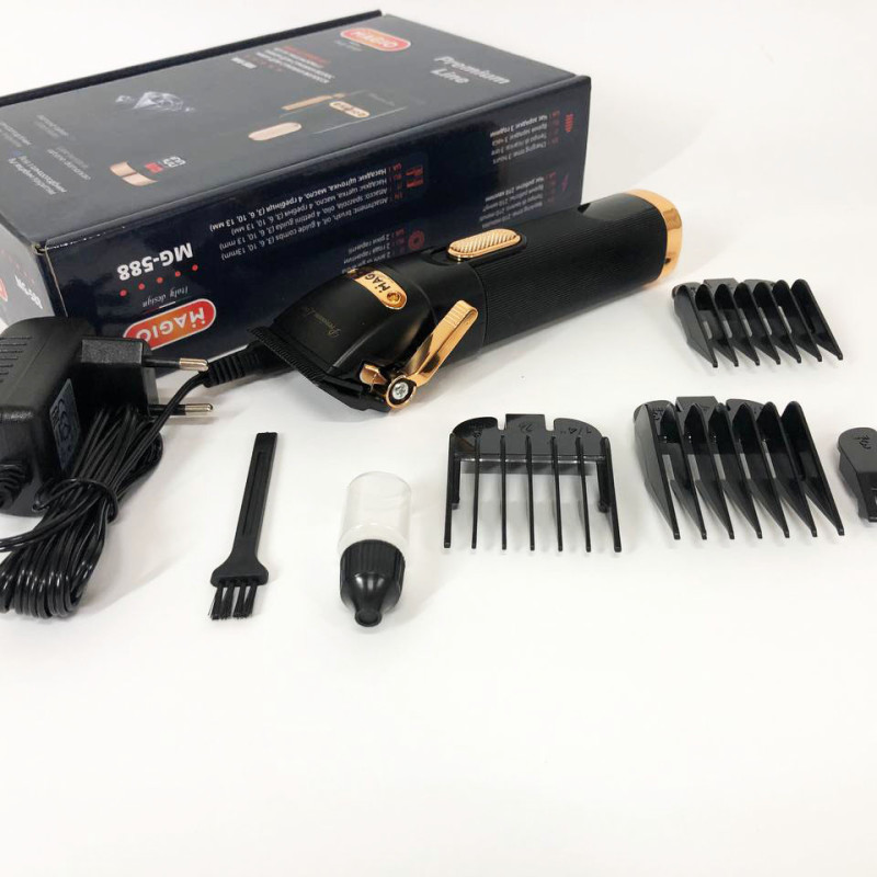 Машинка для стрижки волосся MG-588 дозволяє не тільки економити час, уникаючи черг та візитів до перукаря, але й у будь-який момент коригувати зачіску. Такий аксесуар буде просто незамінним для тих, хто хоче виглядати бездоганно. Він має стильний дизайн та зручний у використанні. Потужний, але тихий двигун працює ефективно і без вібрацій. Легка та компактна, ця сімейна машинка для стрижки волосся дуже зручна у використанні та підходить як для дорослих, так і для дітей. У набір також входить щіточка для чищення та олія.