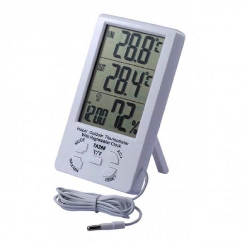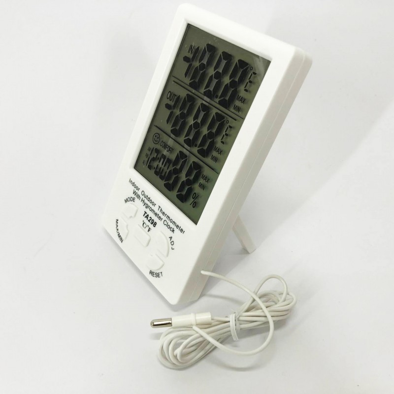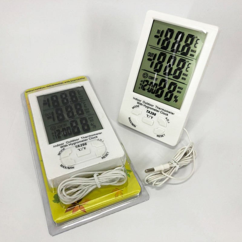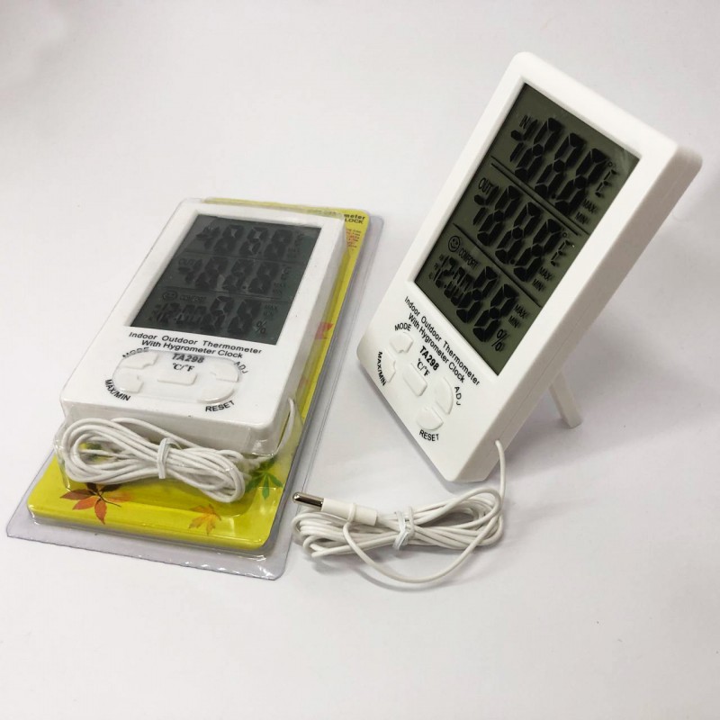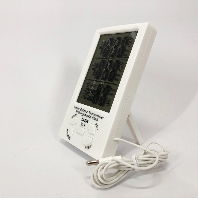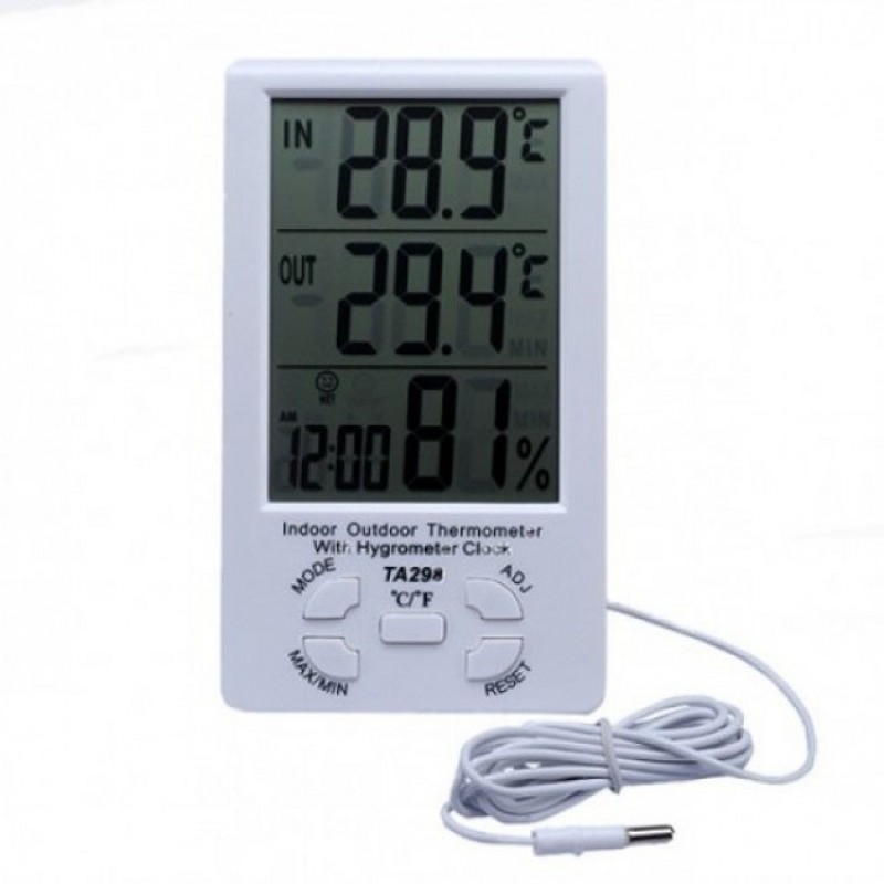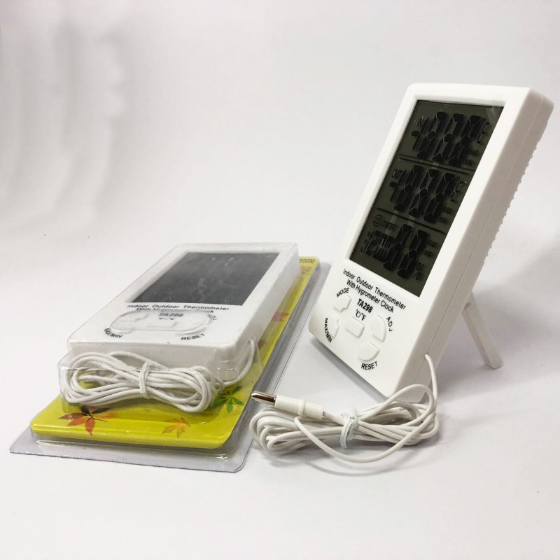 Термометр-гігрометр TA-298 одночасно показує температуру в місці, де він розташований, а також у місці, де розташований датчик. Результати відображаються на великому РК-дисплеї, при цьому максимальні та мінімальні результати вимірювань зберігаються в пам’яті приладу.