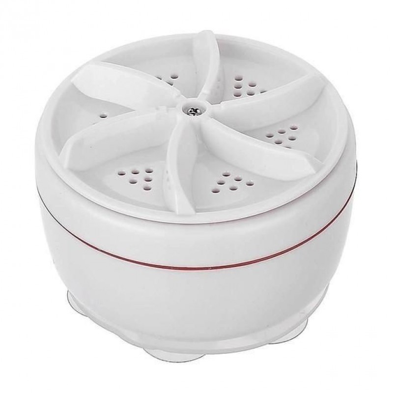 Ультразвукова портативна пральна машина призначена для прання негабаритних речей: дитячого одягу, шкарпеток, білизни, футболок, рушників тощо. Портативна міні пральна машина може обертатися в обох напрямках, за годинниковою стрілкою, а потім проти годинникової стрілки, щоб зробити прання більш ефективним. Мобільність, компактність і мала вага, що дозволяє взяти ці пральні машини в подорож або на дачу (діаметр – всього 9 см). Фіксація до стінки або дну ємності здійснюється за допомогою присосок.