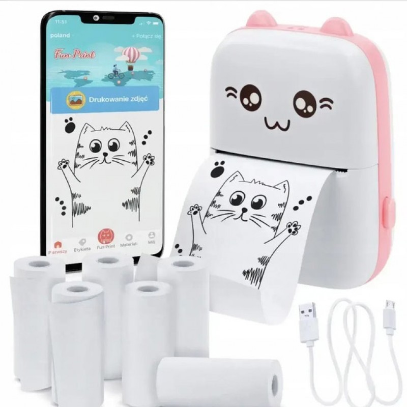 Портативний мініпринтер Jetix Mini printer з Bluetooth для термодруку без чорнила зі смартфона. Колір: рожевий