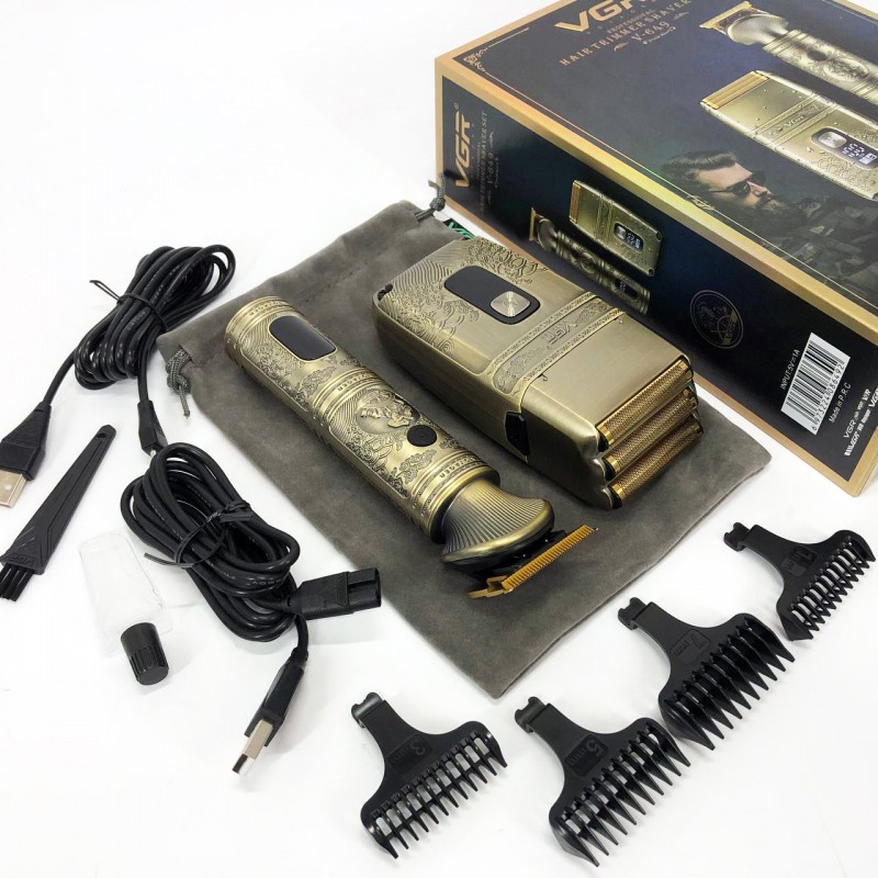 VGR Voyager V-649 Professional Hair Trimmer Shaver Set – це набір, що складається з тримера та електробритви. Тример для бороди і вусів і бритва мають ножі з нержавіючої сталі, що дозволяє їм справлятися навіть з найжорсткішим волоссям. Обидва інструменти мають захист від води IPX6, що дозволяє брати їх із собою в душ, не боячись зіпсувати, а також мають елегантний дизайн із гравіюванням.