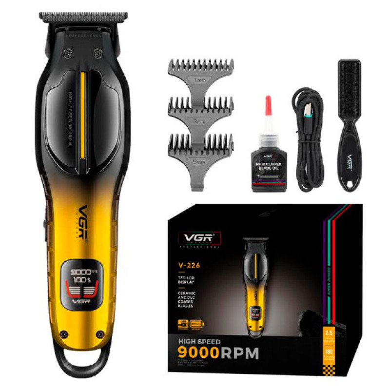 Акумуляторна машинка для стрижки VGR V-226 GOLD поєднує в собі потужність, зручність та високу якість. Тример для стрижки волосся на акумуляторі VGR V-226 GOLD стане чудовим вибором для професіоналів та домашніх користувачів, які цінують надійність, довговічність та комфорт.