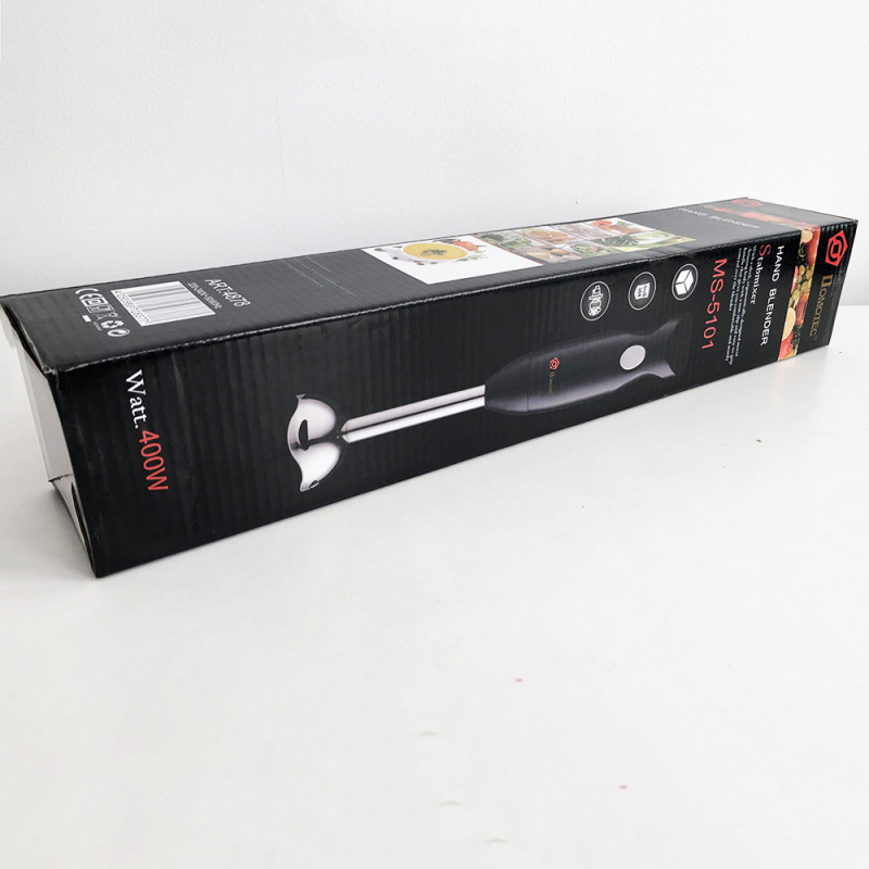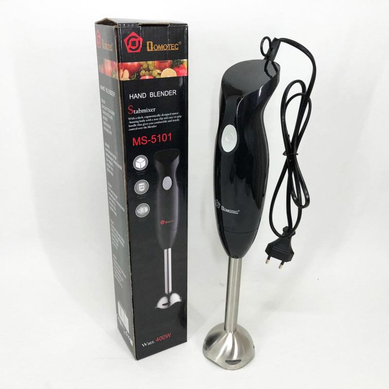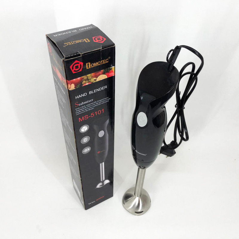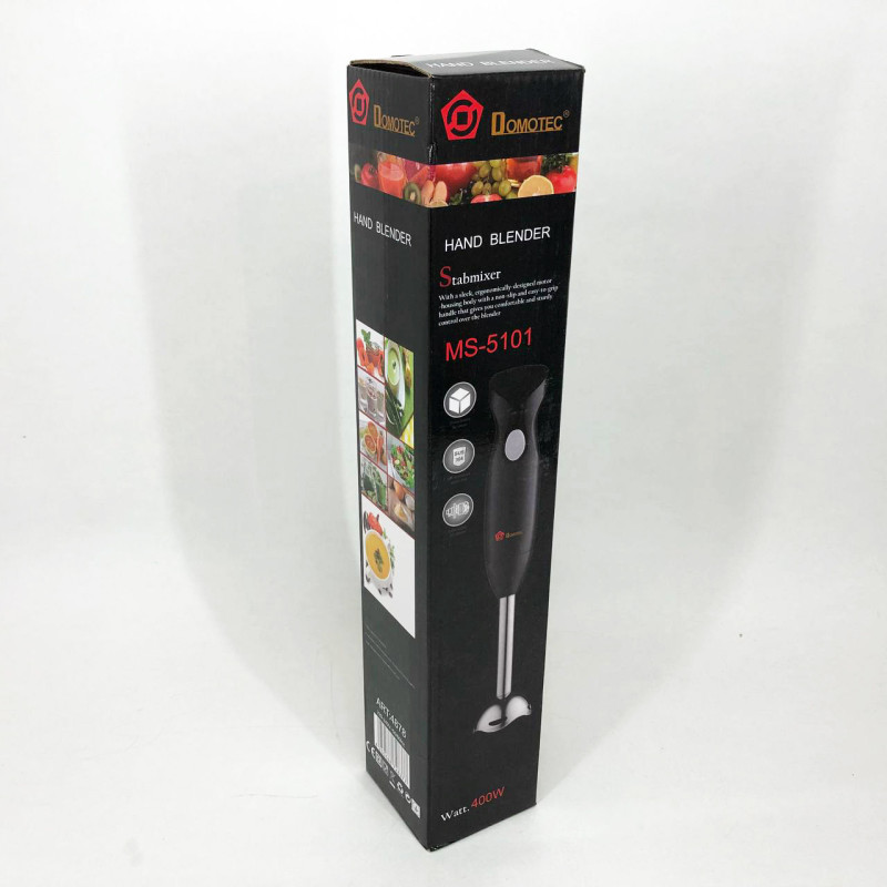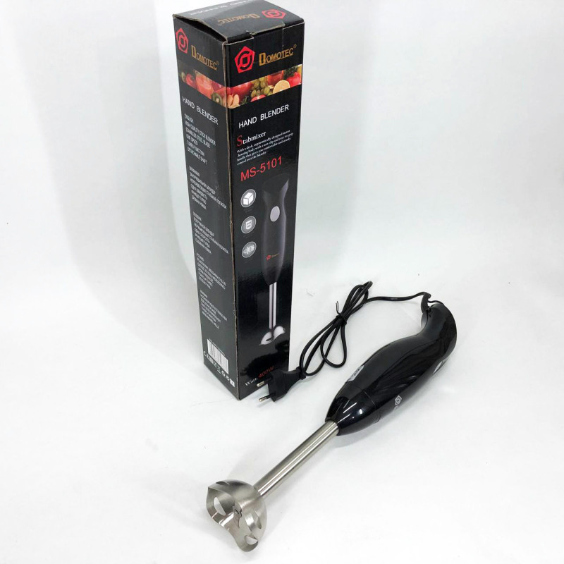 Важко уявити сучасну кухню без блендера. Наявність цього помічника на кухні гарантує прискорений та комфортний процес приготування їжі. Блендер Domotec MS 5101 допоможе в ситуаціях, коли потрібно подрібнити або змішати, а така потреба виникає щодня. Блендер використовується для змішування майонезу, соусів, дитячого харчування, для рубання цибулі, льоду, твердого сиру, м’яса, приготовлених фруктів та овочів, коктейлів. Матеріал ножів – нержавіюча сталь, а пластикова нога зручно знімається і легко миється. Простота його використання не може тішити. Він компактний, легкий, його зручно тримати у руці.