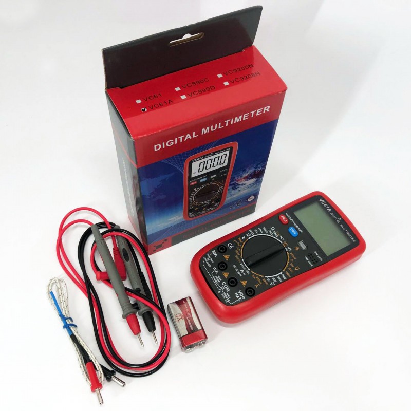 Цифровий мультиметр VC61A призначений для вимірювання опору, постійного та змінного струмів, продзвонювання, вимірювання ємностей, температури. Головні відмінності від дешевших аналогів: прогумований корпус, біле підсвічування, великий екран, якість щупів та проводів помітно покращено.