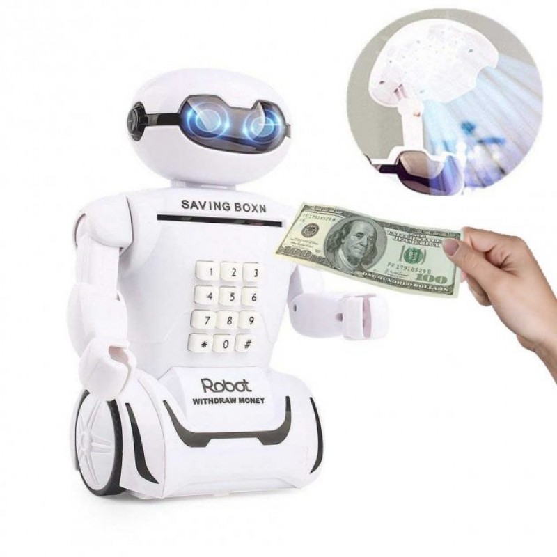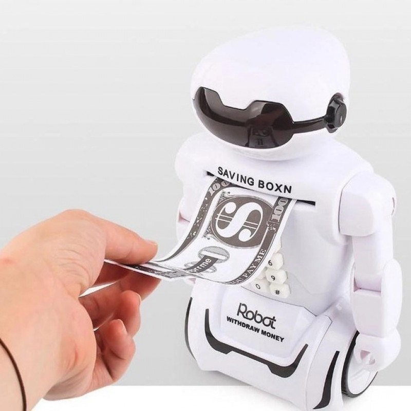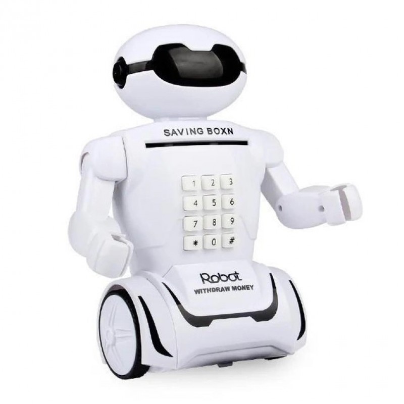 У нього можна покласти (а точніше він сам їх ковтає) як паперові гроші, так і монети, а потім, коли знадобиться дістати гроші, треба просто ввести свій встановлений код і відкриється передня кришка. Ваша дитина буде в захваті від такого робота і до того ж вона використовуватиме його як скарбничку для своїх особистих грошей.