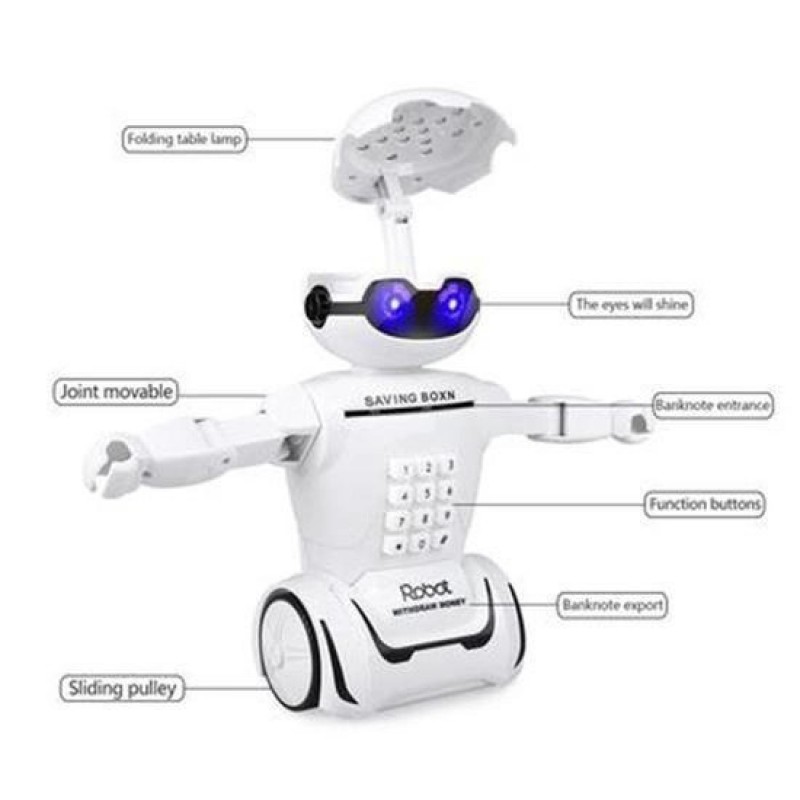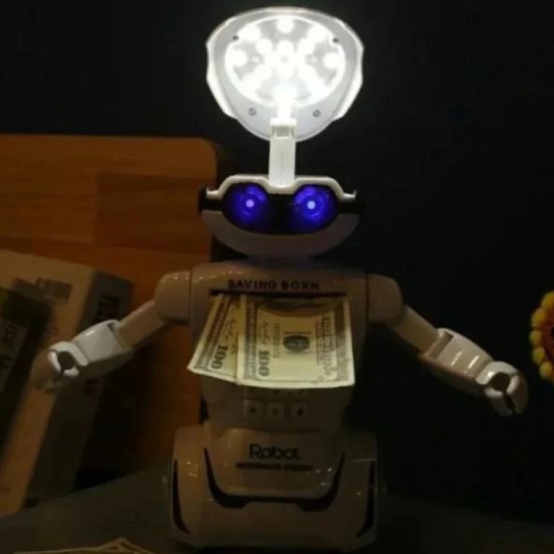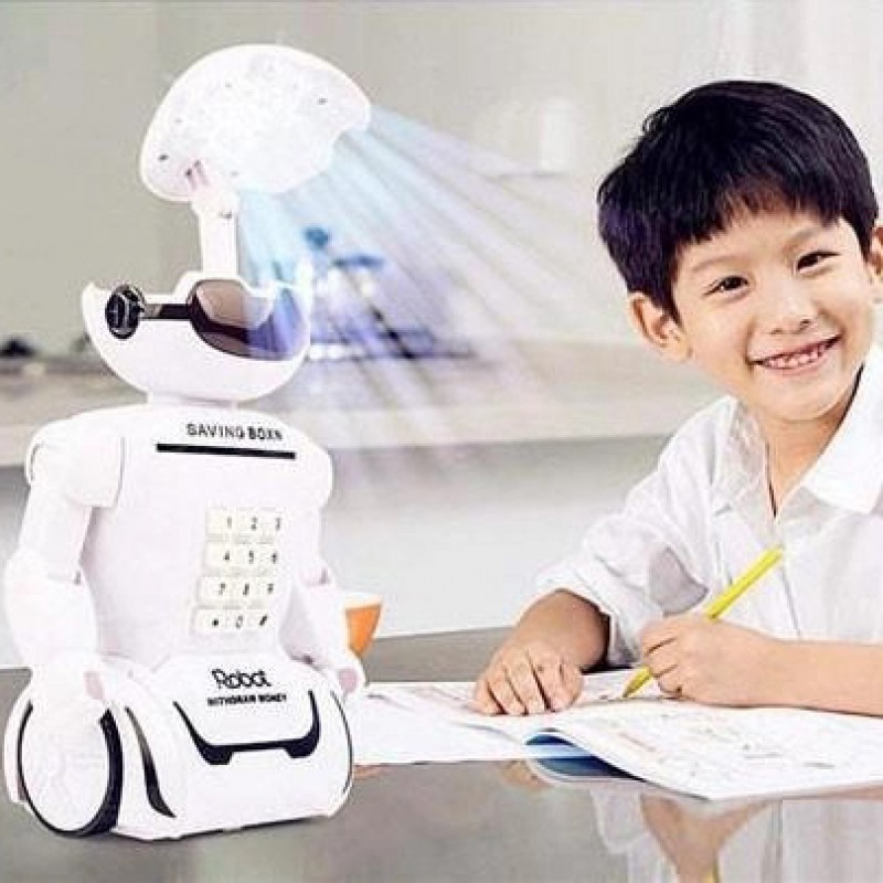 Робота-скарбничка, це одночасно іграшка і скарбничка і світильник, і сейф з кодовим замком.