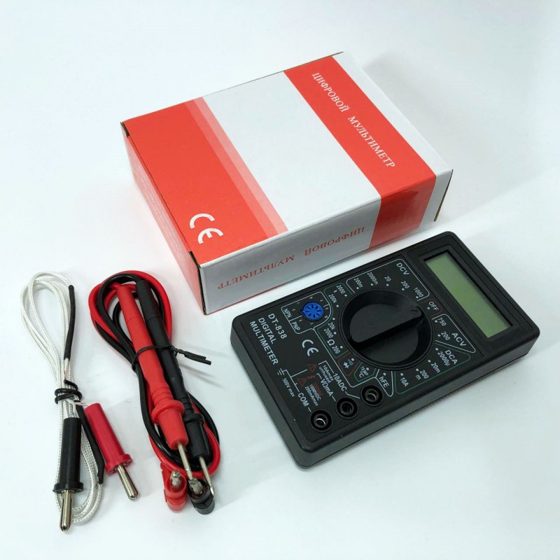 - Функції вимірювань: AC/DC напруга, постійний струм, опір, продзвонювання + термометр