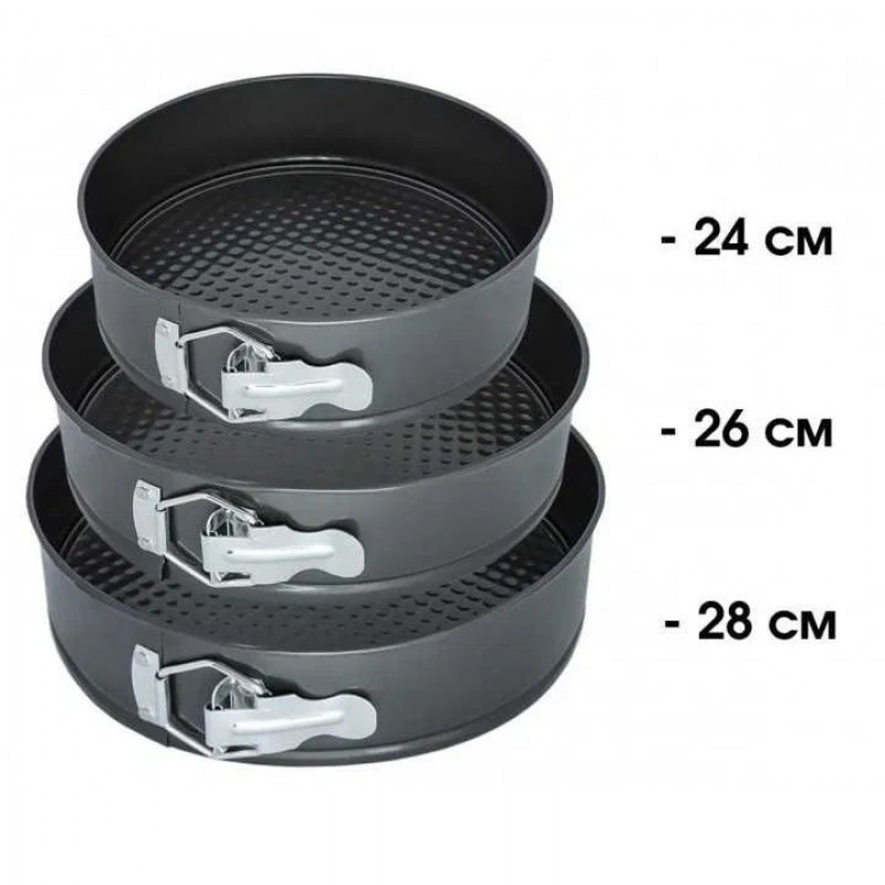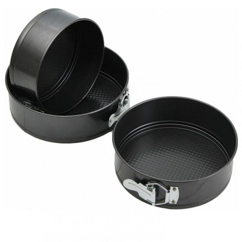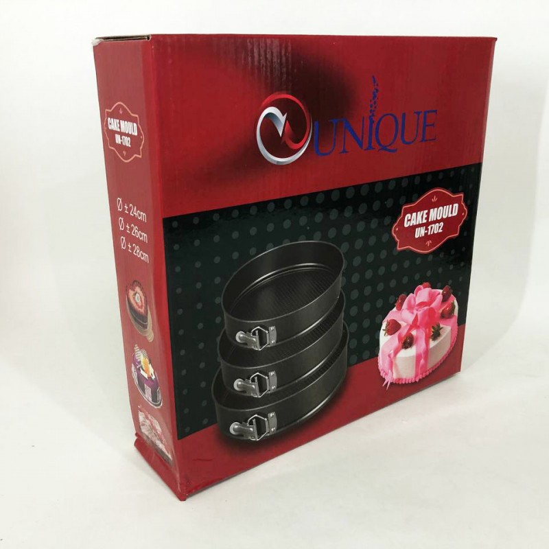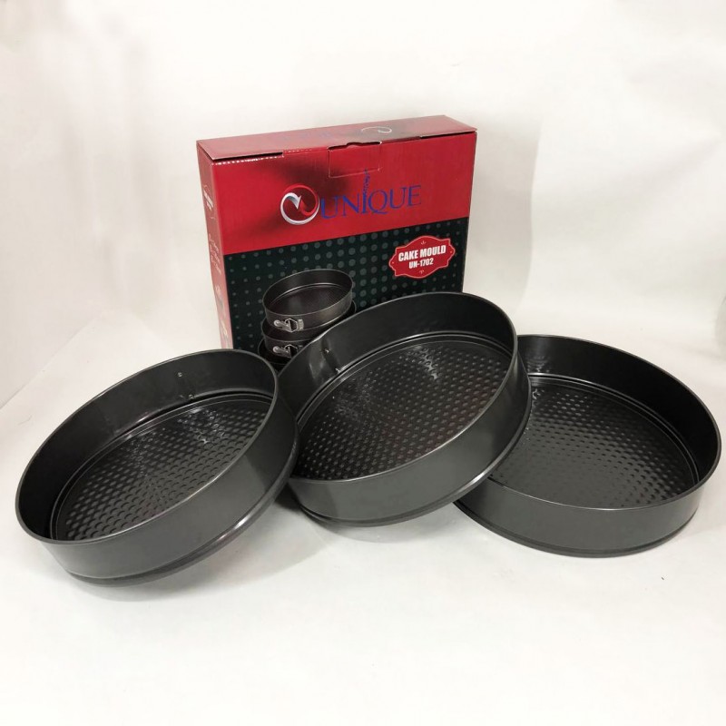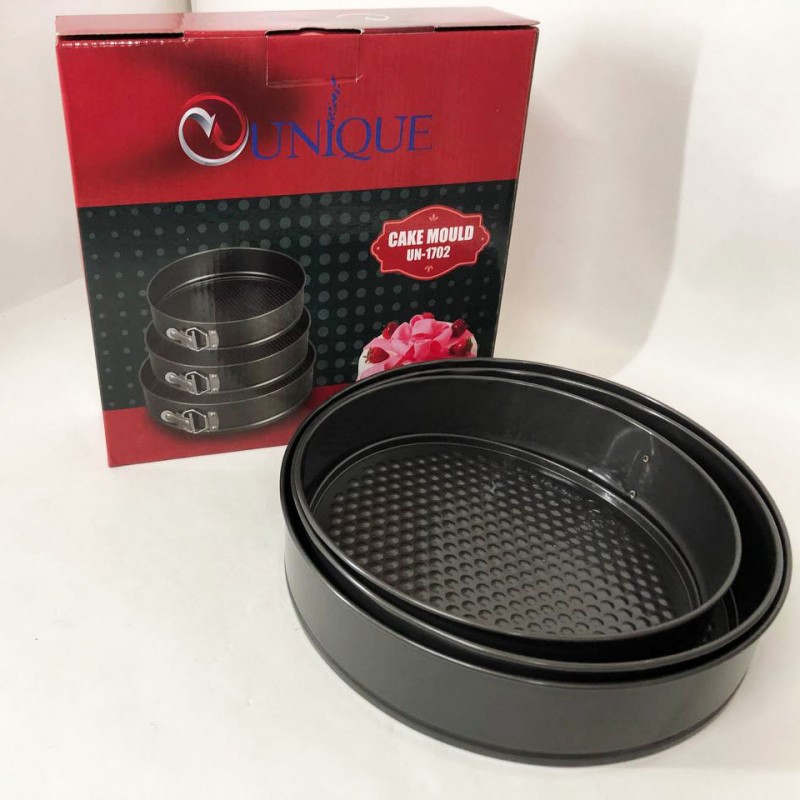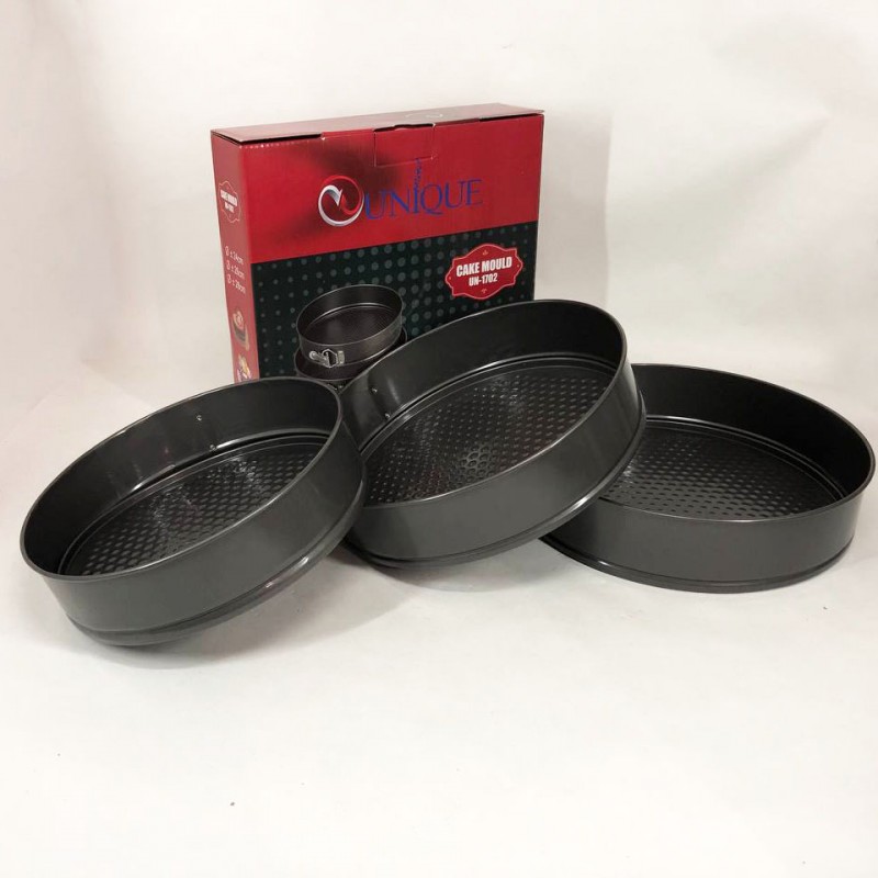 Набір роз’ємних круглих форм UNIQUE для випічки виготовлений з якісної вуглецевої сталі, покритої спеціальним антипригарним покриттям для комфортного використання та легкого догляду. У наборі 3 круглі форми різного діаметру. Тепер ви з легкістю зможете одночасно випікати одразу 3 коржі для багатоярусного торта або кілька різних пирогів. Форми мають надійні затискачі, які утримують дно, а роз’ємна конструкція забезпечить зручне зняття форми з коржею. Безпечне рифлене покриття має антипригарний ефект і гарантує ідеальне випікання ваших страв. Ви будете в захваті від універсальності цього набору форм.