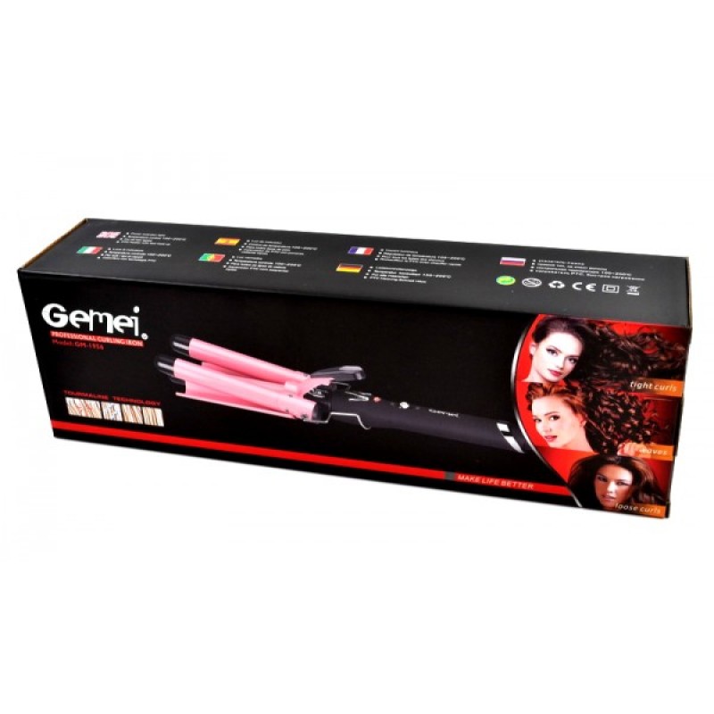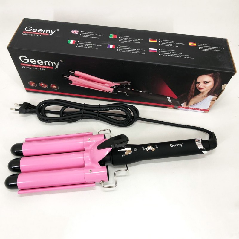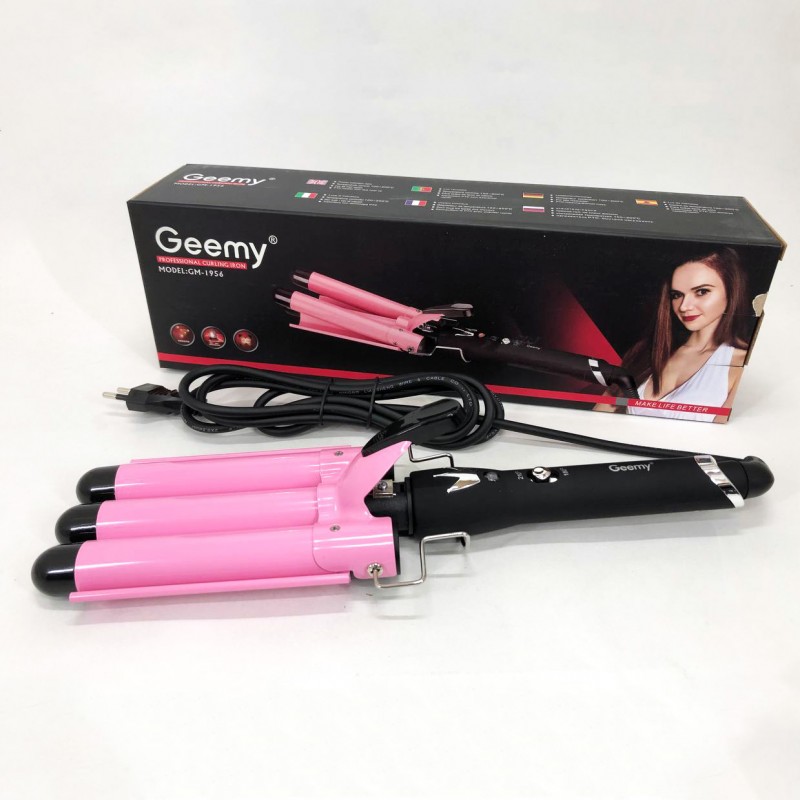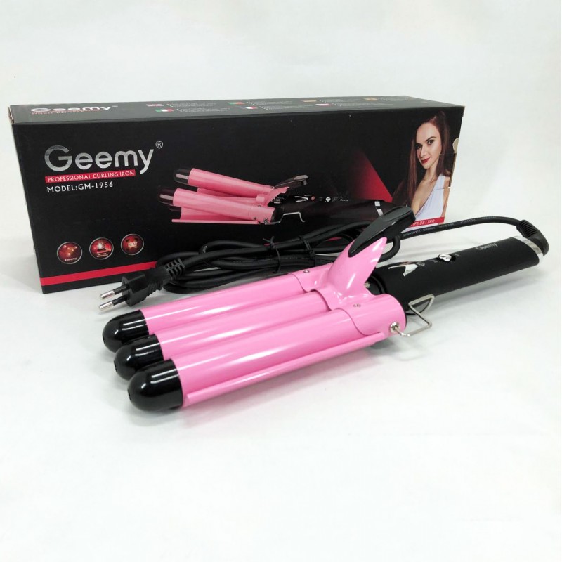 Потрійна плойка дозволяє створювати укладання з локонами різного ступеня пружності. Такі красиві локони виходять через приміщення пасма на одну з поверхонь плойки та придавлювання волосся двома іншими. Фіксація відбувається під впливом високої температури. Модель плойки Gemei GM 1956 має міцне та довговічне керамічне покриття. Тепер створювати оригінальне укладання без особливого клопоту і при цьому максимально щадним способом. Плойка дозволяє створювати кілька варіантів хвиль – від S-подібних до хвиль, з ледь помітними округленням, надаючи особливого шарму, підкреслюючи індивідуальність та елегантний тонкий смак.
