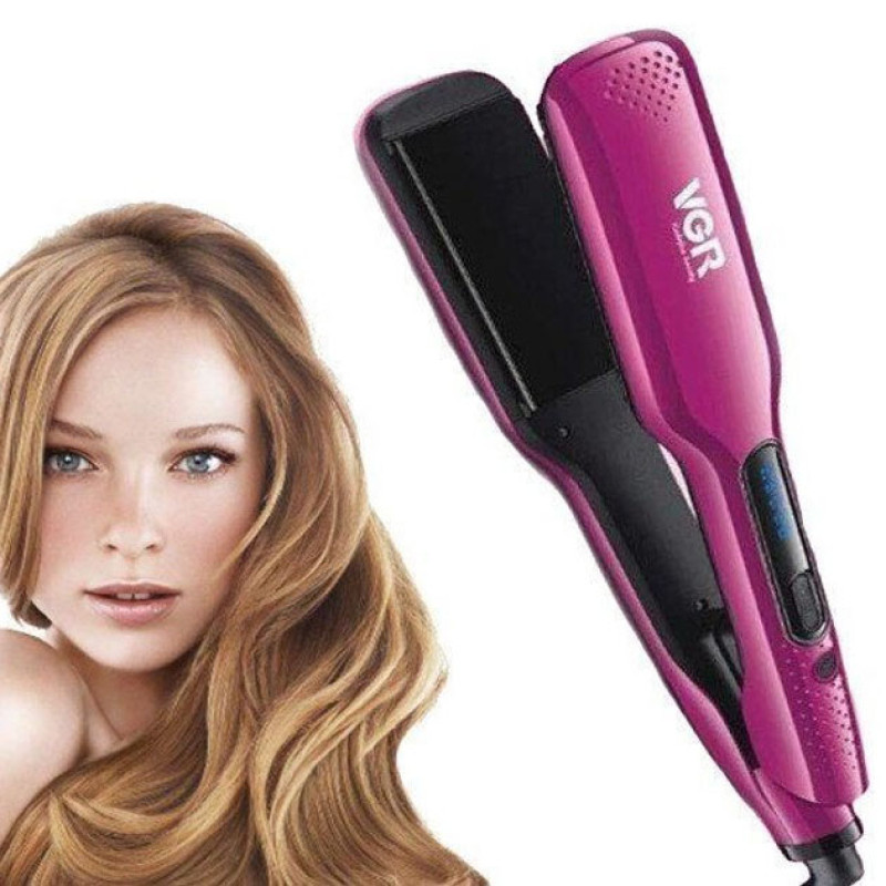 Широка праска для випрямлення волосся VGR V-506 потужністю 55 Вт з LED дисплеєм 130-210 градусів рожевий