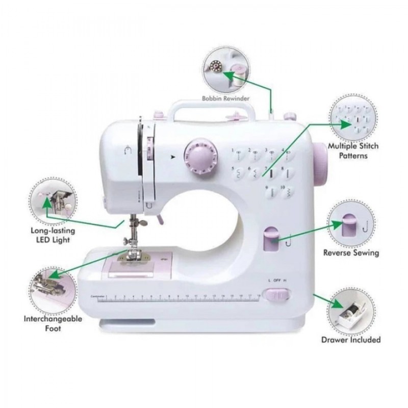 FHSM-505 – це багатофункціональна, портативна швейна машинка, що працює 12 типами рядків. Підійде як початківцям, так і досвідченим кравчиням.