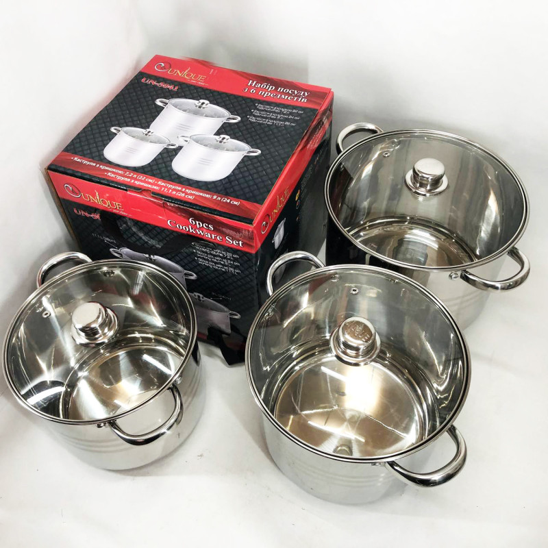 УЦІНКА: Набір великих каструль Unique UN-5041 (БЕЗ ОДНІЙ КРИШКИ)