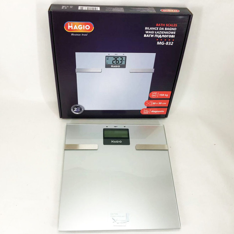 Зі зручністю включення одним дотиком, точними вимірюваннями та розширеними функціями діагностики, ваги MG-832 стануть незамінним помічником у підтримці вашого здоров’я та форми.
