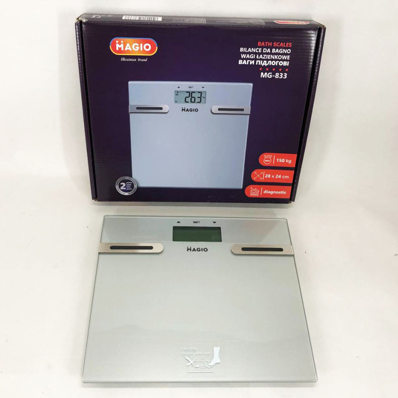 Стильні та багатофункціональні, підлогові ваги MG-833 – це ідеальне рішення для тих, хто прагне підтримувати здоровий спосіб життя . Вишуканий дизайн, поєднаний із передовими технологіями, робить ці ваги незамінним аксесуаром у вашому будинку.